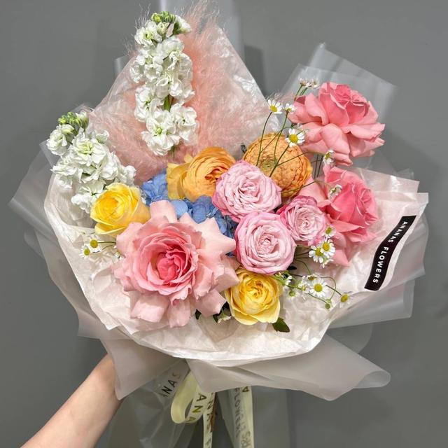 У нас есть также широкий ассортимент цветов и растений для букетов: пионовидные розы, ранункулюсы, гипсофила, гортензия, пионы, лаванда, альстромерия, кустовая роза, герберы, орхидеи, лилии, гвоздика, тюльпаны хризантемы, розовая роза, желтая роза и другие цветы.